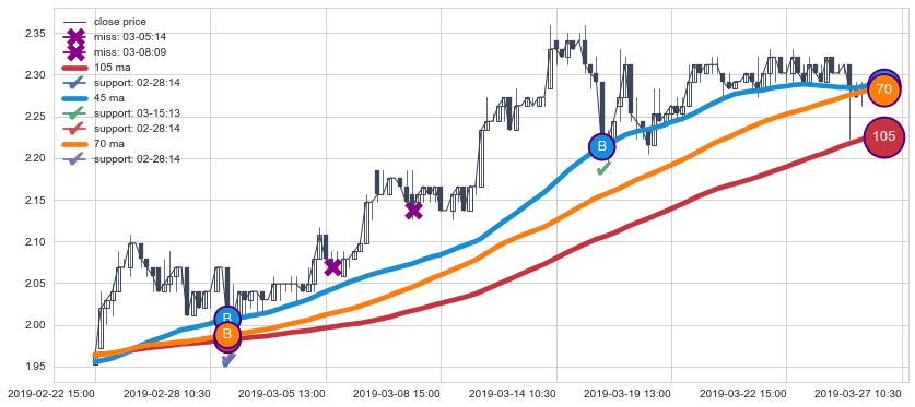➣ 70小时均线于(07-19 14:00: 1.9569)形成【死叉】基于【死叉历史模型】预测死叉后最低波谷价格: 1.9099, 死叉后最低价格1.9000,虽然已经到达预测最低波谷价格,但耗时间很短动能很强, 预期继续下跌
