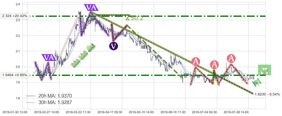 ♘ 阻力价格位2.324,可信任强度73.68%,距离最后交易2019-07-31 15:00形成的收盘价格1.9300相差 +20.42%