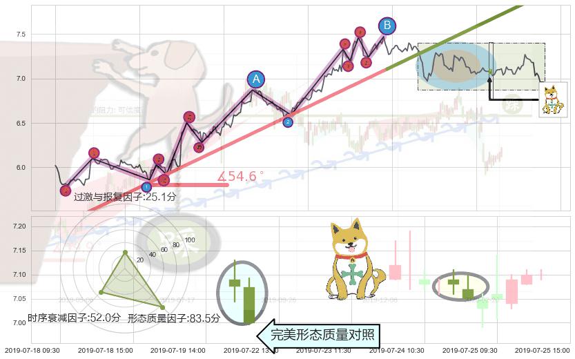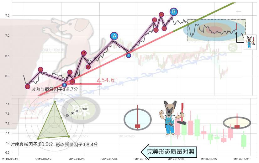 从2019-05-23 14:00至2019-07-10 11:30,共包含191个小时,阶段股价上涨24.31%,阶段股价变动位移路程比: 1 : 4,上涨趋势角度: 54.6