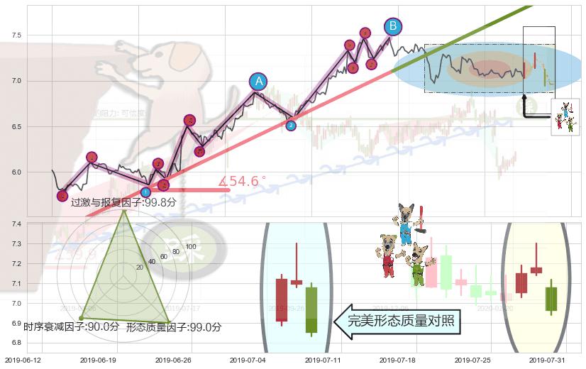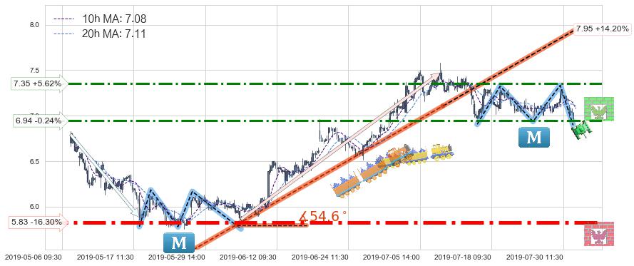 ➢ 2019-05-23 14:00-2019-07-10 11:30上升趋势存在反转[风险],其原上升趋势的支撑位(7.95)已破位[强阻力信号],原上升趋势角度: 54.6˚