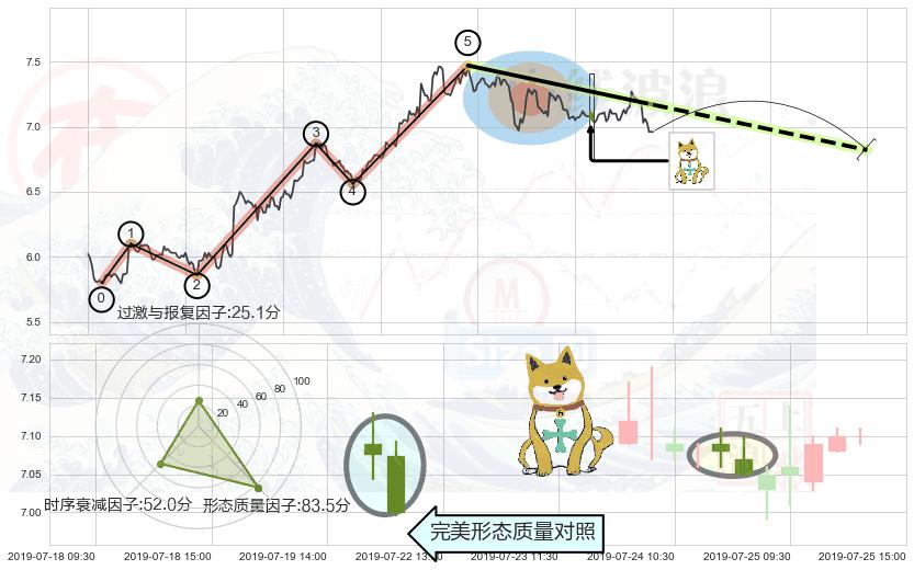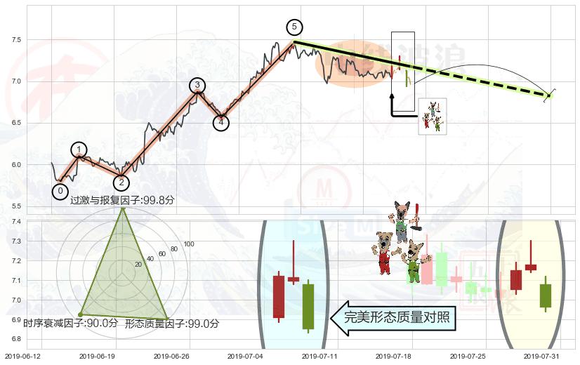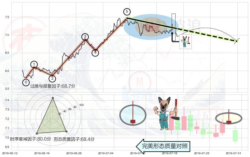 ➢ 🕰 价格走势在2019-07-30 00:00:00至2019-07-30 00:00:00期间形成看跌(高位倒锤头)流星线,残存影响值:-6.94