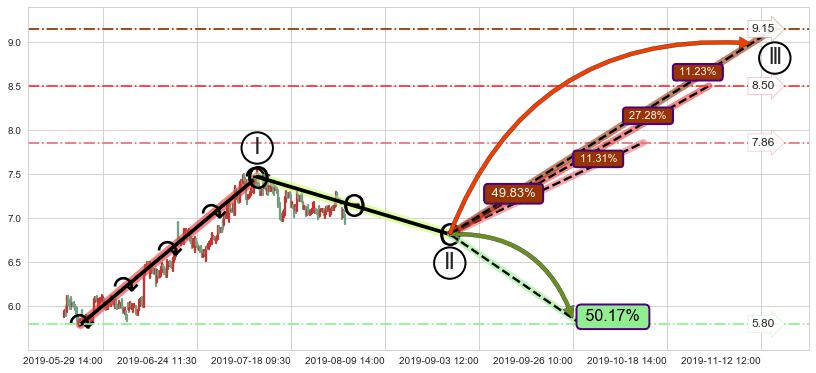 ➢ 循环浪继续向上【最低】位置(10-14:13, 7.86),匹配聚类样本比例22.70%, 可能性概率11.31%