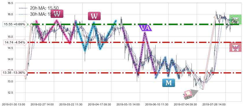 ♘ 阻力价格位15.55,可信任强度91.18%,距离最后交易2019-07-31 15:00形成的收盘价格15.44相差 +0.69%