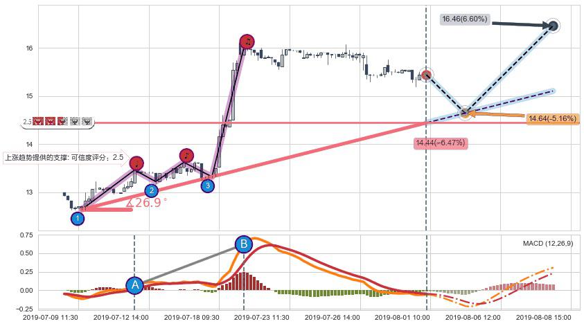 ➣ 预测:2019-08-08 15:00,【继续上扬】稳定目前上涨趋势的前提下,预测价格:16.46