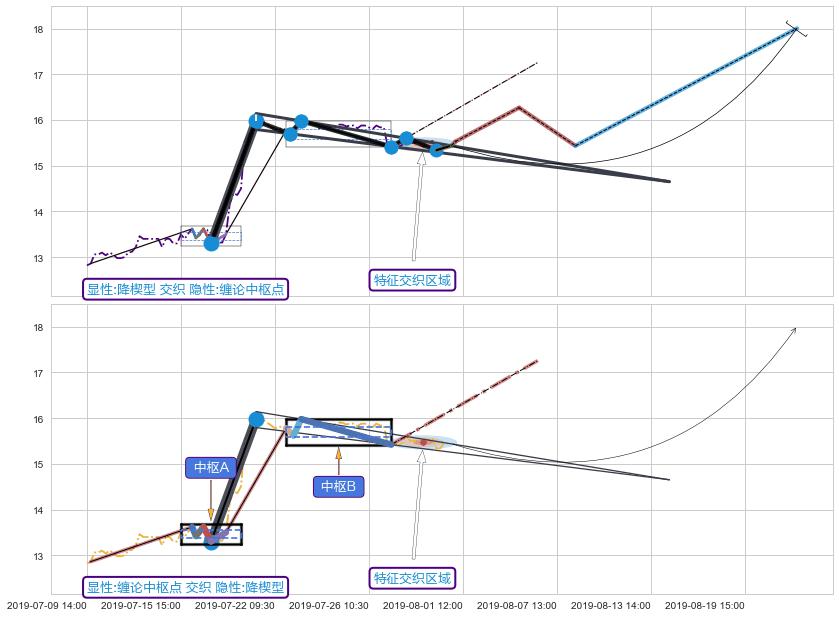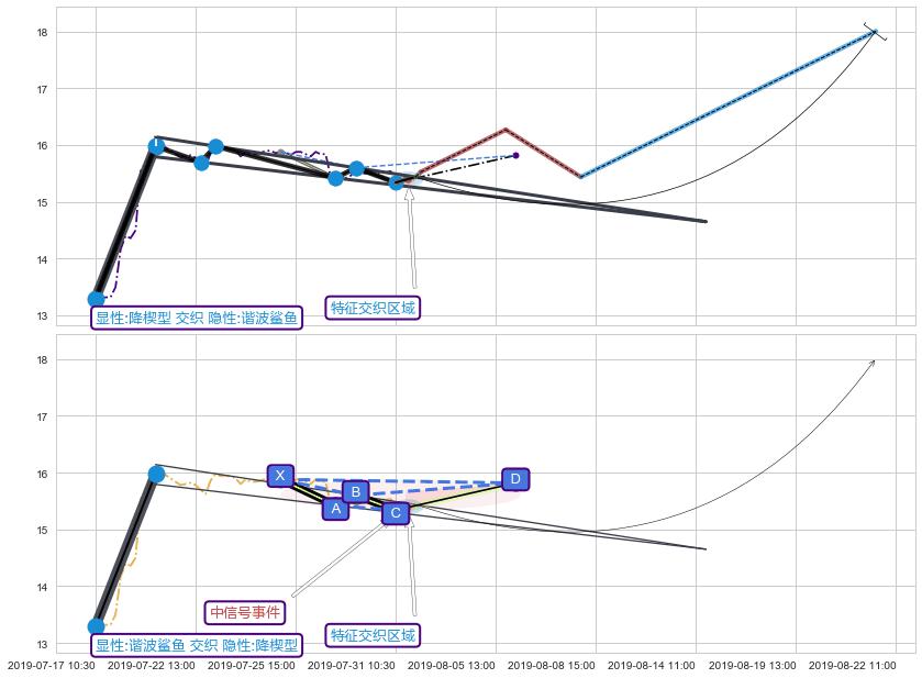 ➢ 降楔型与缠论中枢点信号事件周期长度级别相同,同周期信号事件