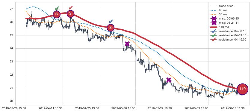 ➢ 最优均线组合共正确确认支撑阻力信号13处,正确确认率 59.09%