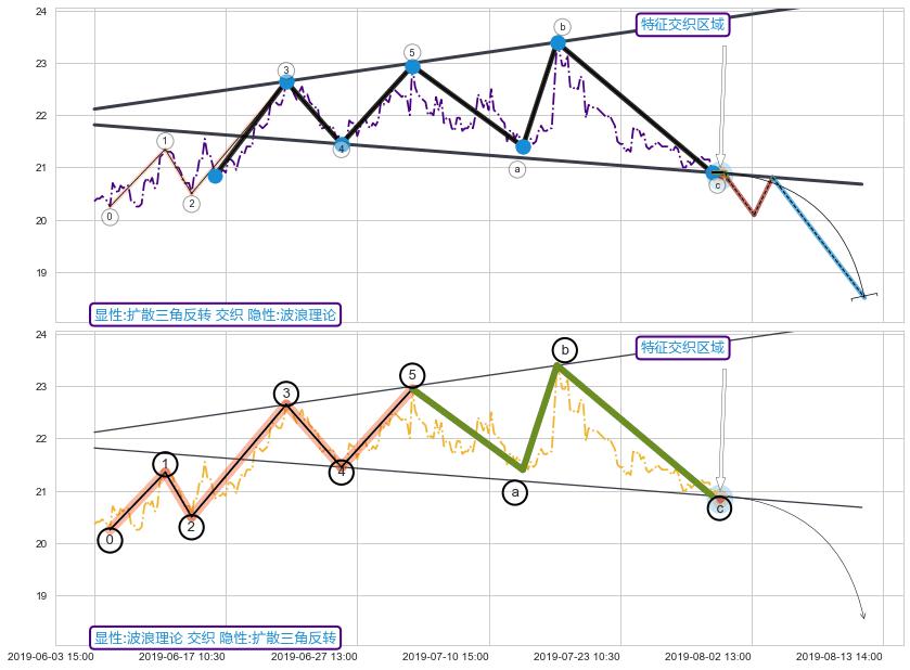 ➢ 扩散三角反转与波浪理论信号事件周期长度级别相同,同周期信号事件