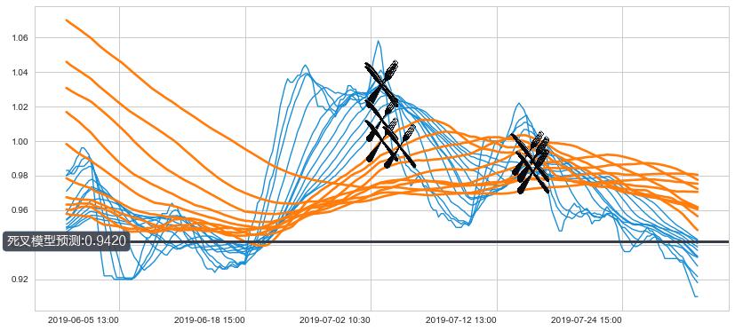 ➣ 70小时均线于(07-02 15:00: 0.9999)形成【死叉】基于【死叉历史模型】预测死叉后最低波谷价格: 0.9490, 死叉后最低价格0.9100,已经下跌超出预测最低波谷价格, 预期反弹