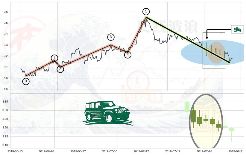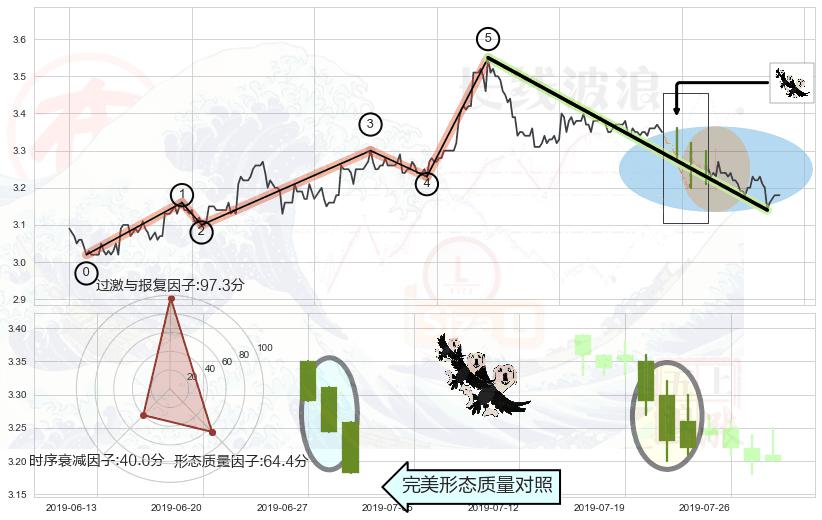➢ 🕰 价格走势在2019-07-23 00:00:00至2019-07-29 00:00:00期间形成高档五阴线,残存影响值:-5.09