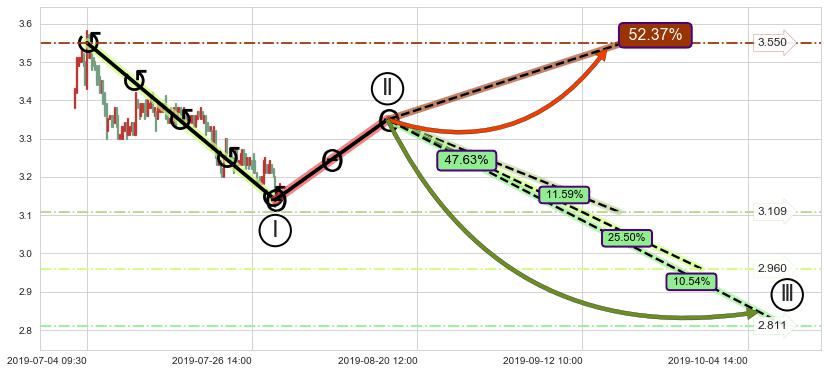 ➣ 循环浪继续向下【平均值】位置(09-30:10, 2.960),匹配聚类样本比例53.54%, 可能性概率25.50%
