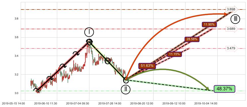 ➢ 循环浪继续向上【最低】位置(09-16:10, 3.479),匹配聚类样本比例21.59%, 可能性概率11.15%