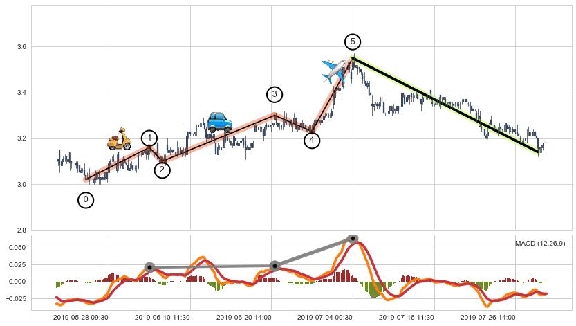 从2019-02-27 14:00至2019-03-15 15:00,共包含74个小时,阶段股价下跌-8.86%,阶段股价变动位移路程比: 1 : 5