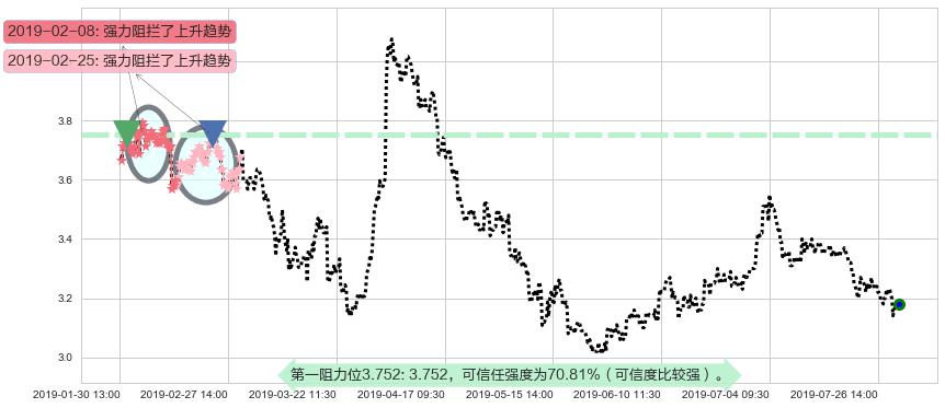 ♘ 阻力价格位3.752,可信任强度70.81%,距离最后交易2019-07-31 15:00形成的收盘价格3.180相差 +18.00%