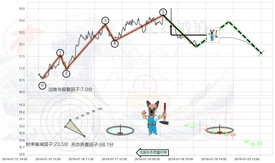 ♘ 阻力价格位13.13,可信任强度78.46%,距离最后交易2019-07-31 15:00形成的收盘价格11.96相差 +9.82%