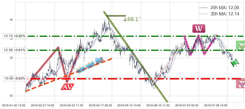♘ 阻力价格位12.39,可信任强度73.36%,距离最后交易2019-07-31 15:00形成的收盘价格11.96相差 +3.61%