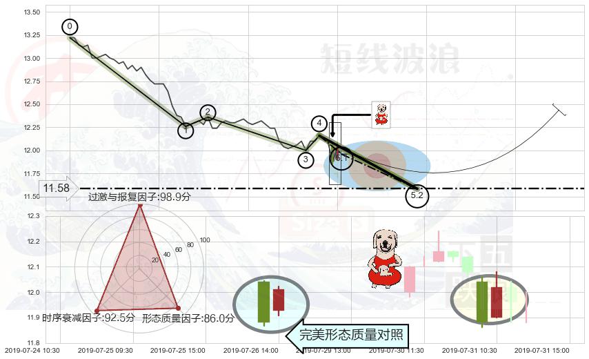 🦴 长线均值回复组合短线趋势跟踪[强阻力信号]2019-07-11 09:30-2019-07-31 14:00下跌趋势依然成立(下跌趋势跟踪依然存在),短线价格略微上行反弹(均值回复猜想),即将接近下跌趋势提供的未破位阻力价格:12.00。