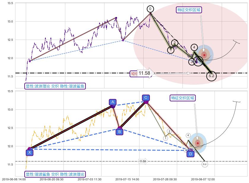➣ 预测:2019-08-05 15:00,【试探阻力】稳定目前下跌趋势的前提下,预测价格:11.66