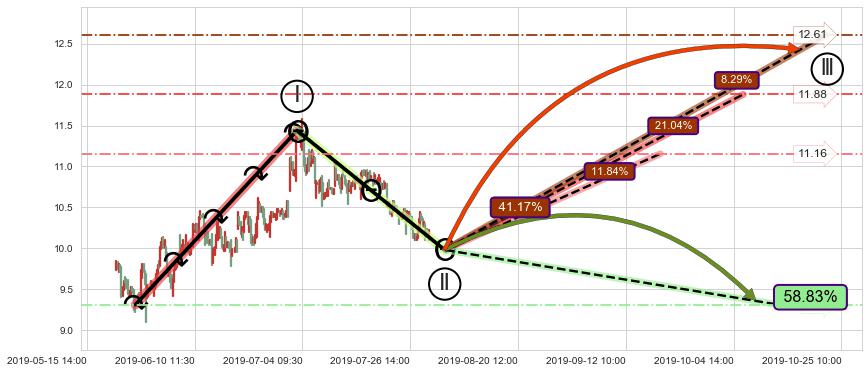 ➢ 循环浪继续向上【最低】位置(09-19:12, 11.16),匹配聚类样本比例28.76%, 可能性概率11.84%