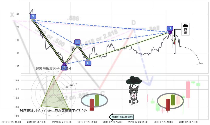 ➢ 🕰 价格走势在2019-07-29 15:00:00至2019-07-30 09:30:00期间形成双针探底,残存影响值:7.39