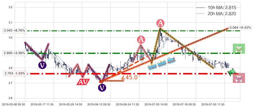 ♘ 阻力价格位3.045,可信任强度56.48%,距离最后交易2019-07-31 15:00形成的收盘价格2.800相差 +8.76%