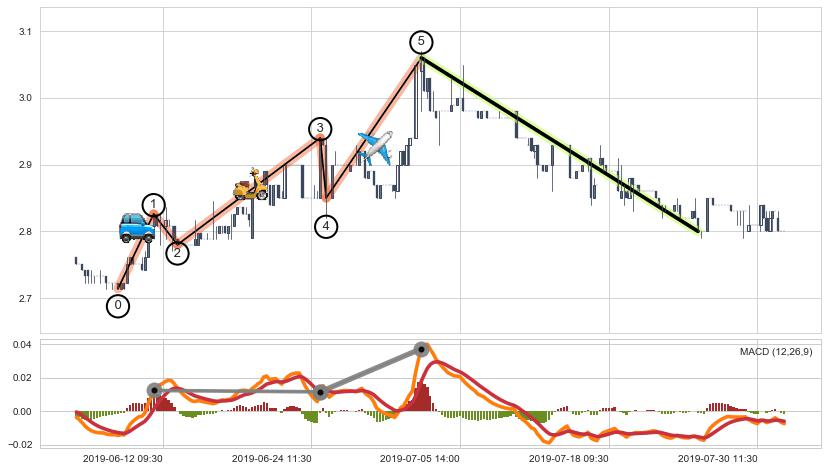 从2019-05-31 13:00至2019-06-11 13:00,共包含37个小时,阶段股价上涨1.03%,阶段股价变动位移路程比: 1 : 8