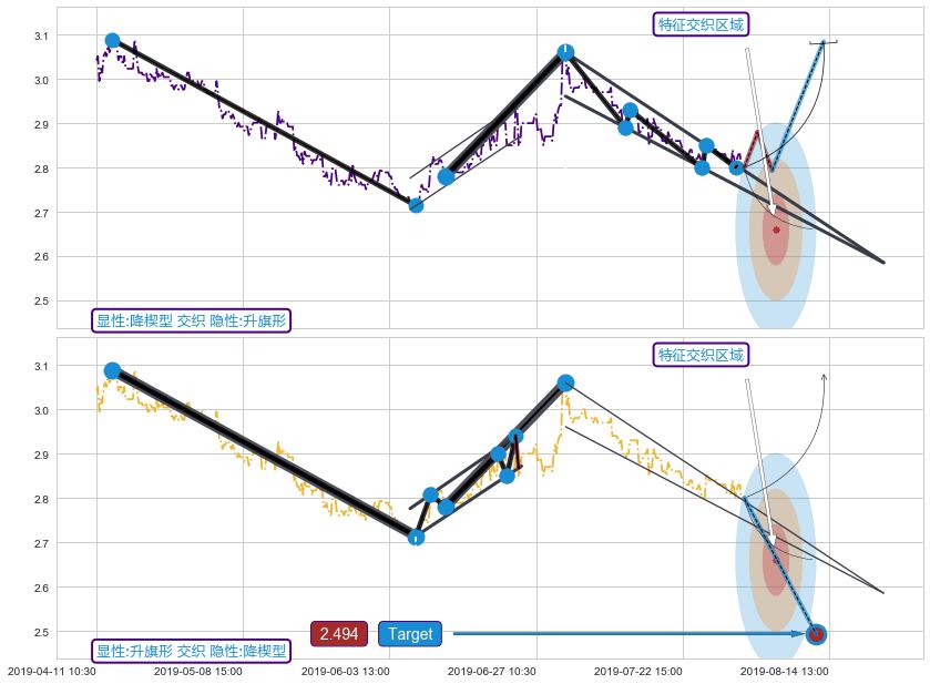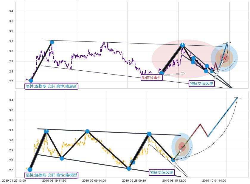 ➢ 降楔型属【短级别信号事件】降旗形属【长级别信号事件】长短周期组合信号事件, 短长事件长度比27.86%