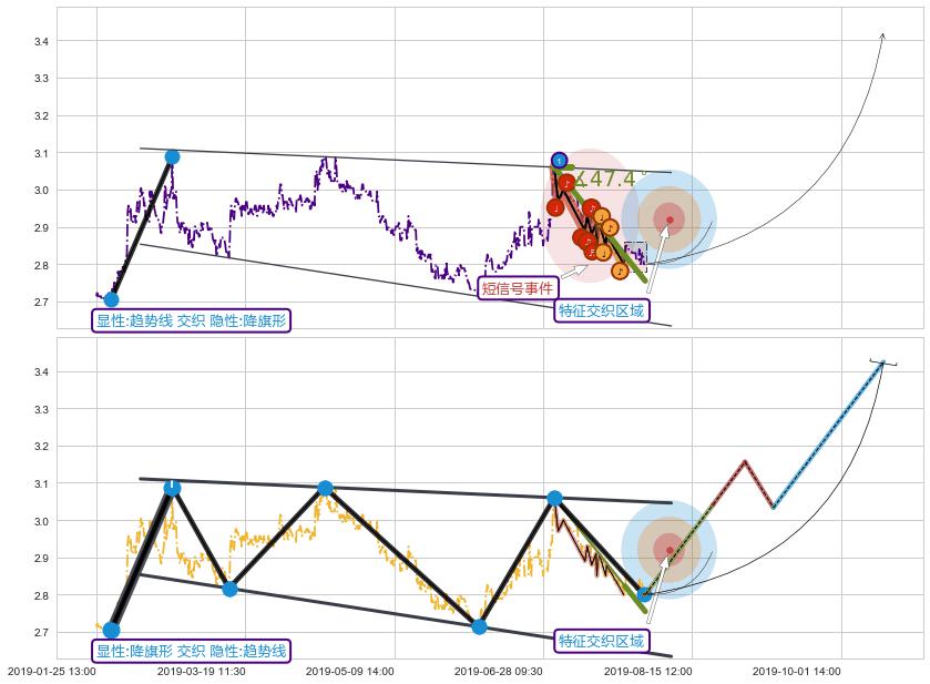 ➢ 趋势线属【短级别信号事件】降旗形属【长级别信号事件】长短周期组合信号事件, 短长事件长度比13.37%