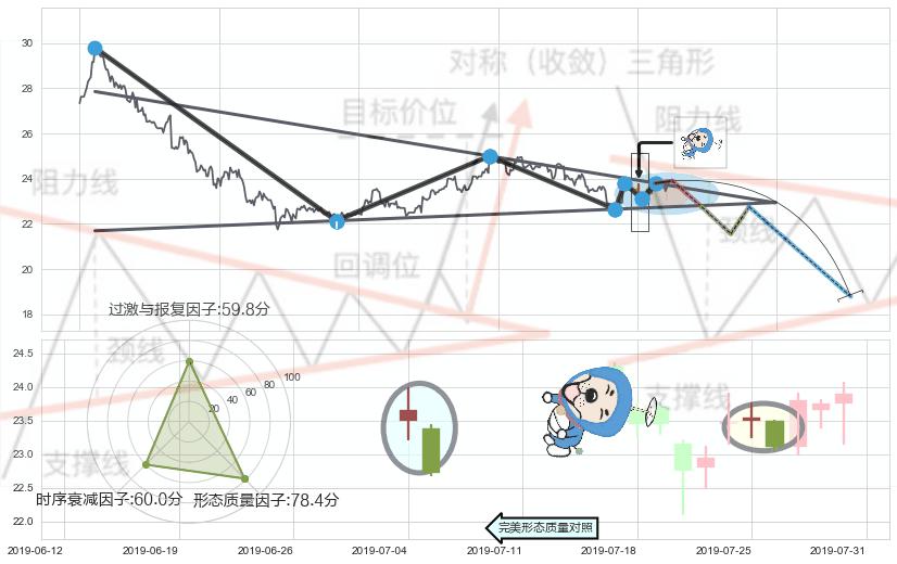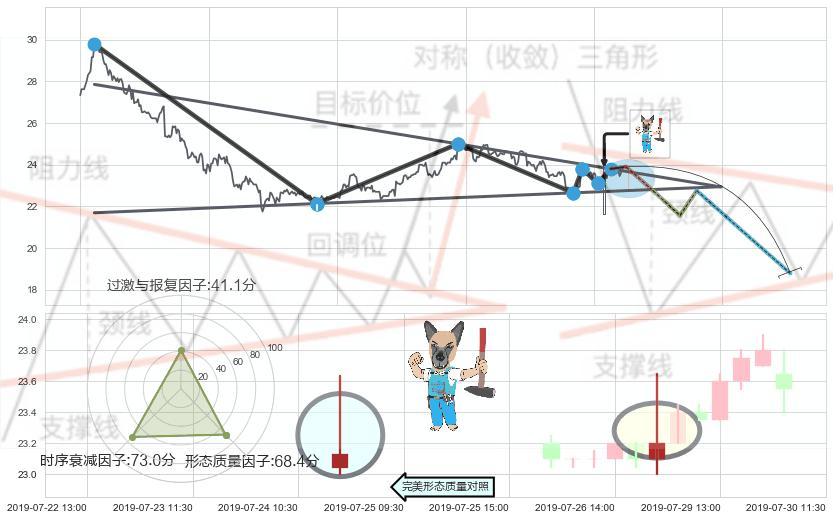 ➢ 下跌螺旋桨 🔜 下降对称三角整理临近支撑猜想转换阻力下跌 综合量化分数:48.13 【中性】