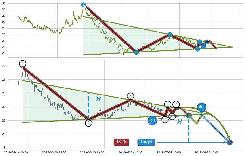 ➣ D点拟合预测价格26.18,距离最后交易收盘价格23.90相差 +9.54%