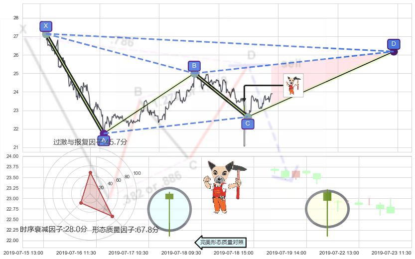 ➢ 🕰 价格走势在2019-07-22 09:30:00至2019-07-22 09:30:00期间形成锤头线(锤子线),残存影响值:3.98