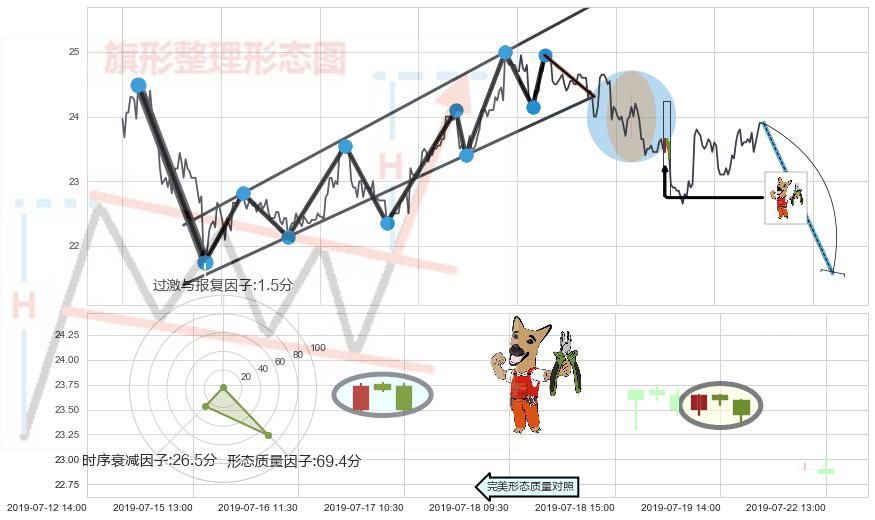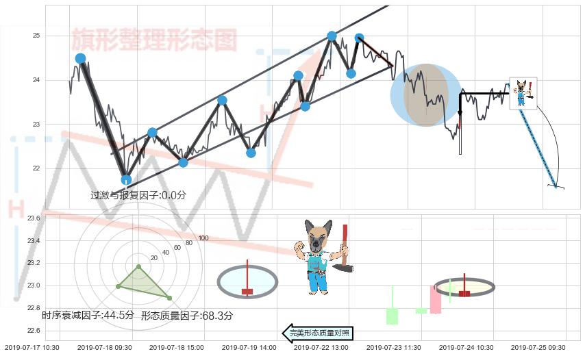 ➢ 🕰 价格走势在2019-07-23 15:00:00至2019-07-23 15:00:00期间形成看跌(高位倒锤头)流星线,残存影响值:-2.62