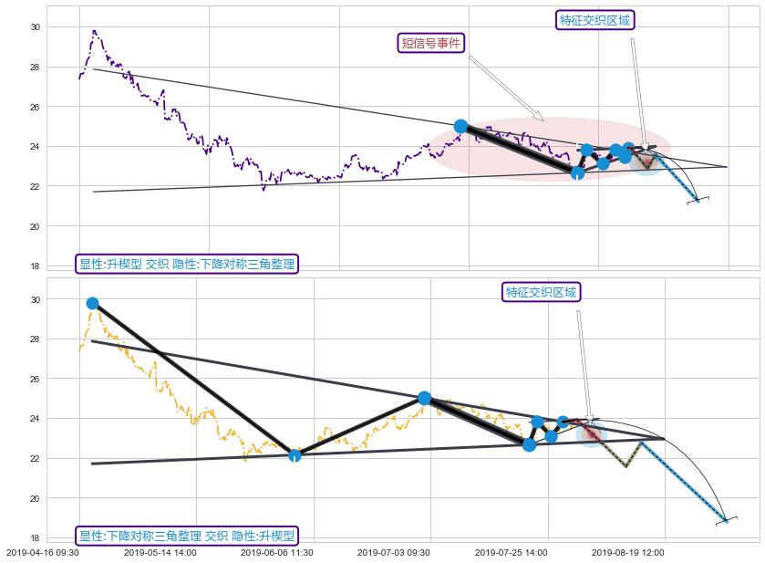 ➢ 升楔型属【短级别信号事件】下降对称三角整理属【长级别信号事件】长短周期组合信号事件, 短长事件长度比31.81%