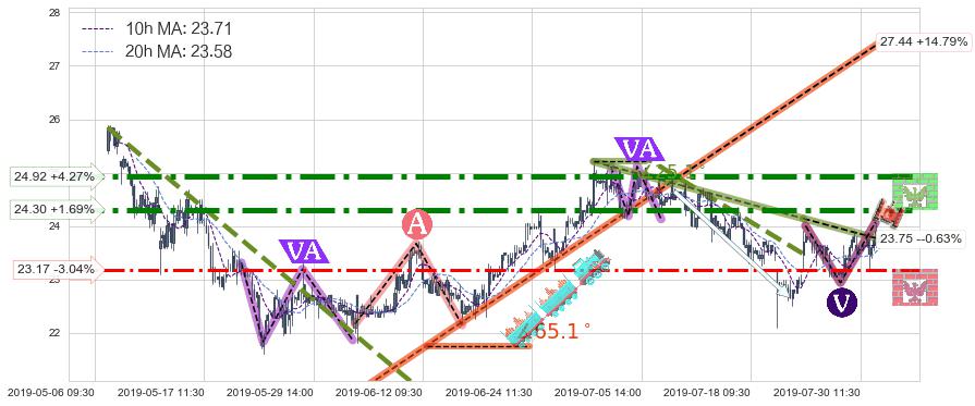 ♘ 阻力价格位24.30,可信任强度87.85%,距离最后交易2019-07-31 15:00形成的收盘价格23.90相差 +1.69%