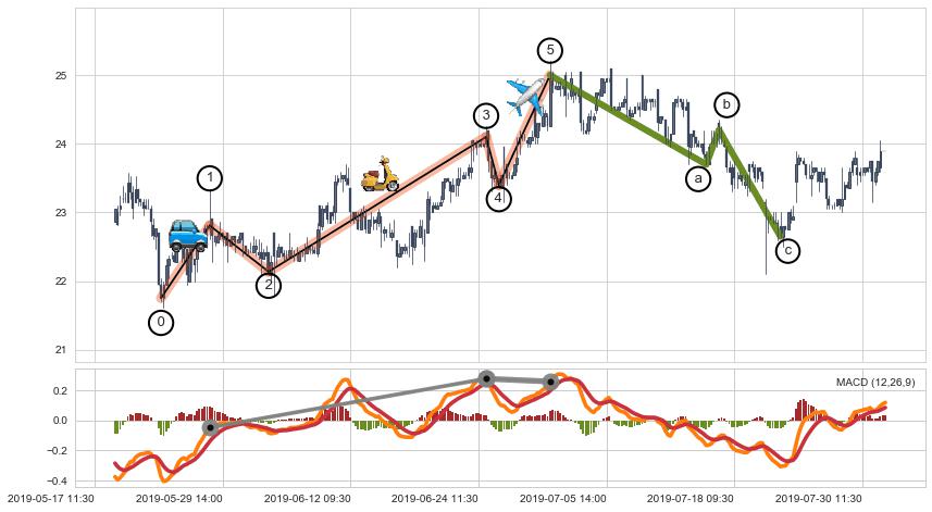 ➣ ['回调abc识别为: 【锯齿型调整浪】 ', '锯齿型:子浪535结构 ⓑ点振幅较小,ⓒ点继续发力远超ⓐ点结束位置']