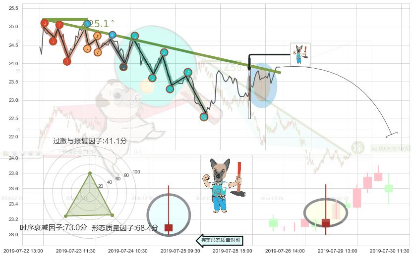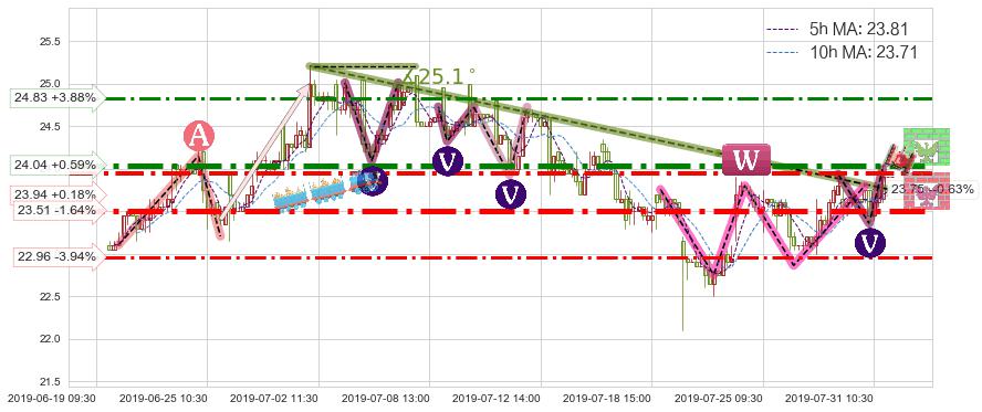 🦴 长线均值回复组合短线趋势跟踪[强阻力信号]2019-07-02 09:30-2019-07-23 11:30下跌趋势依然成立(下跌趋势跟踪依然存在),短线价格略微上行反弹(均值回复猜想),即将接近下跌趋势提供的未破位阻力价格:23.75。