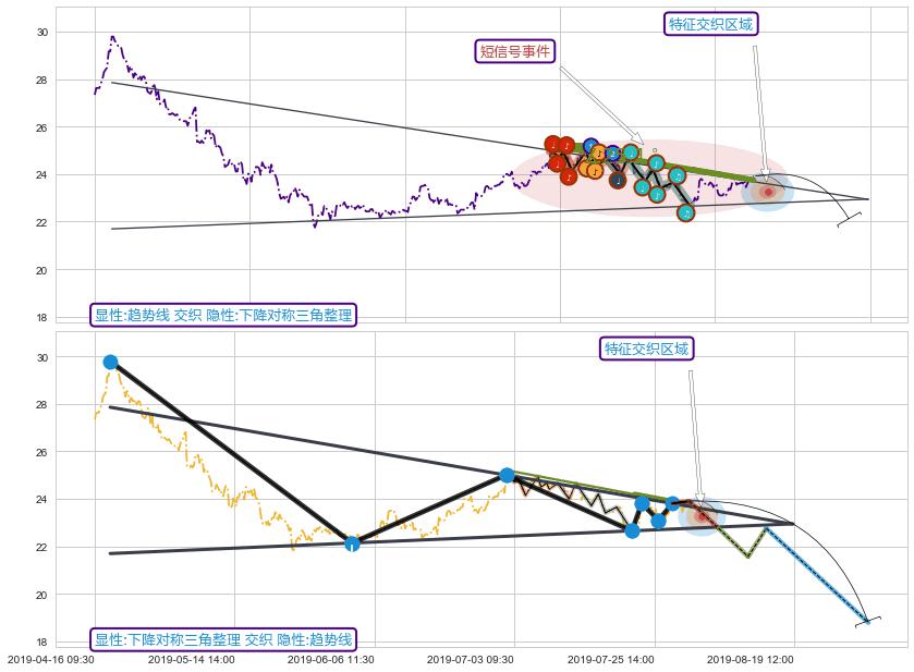 ➢ 趋势线属【短级别信号事件】下降对称三角整理属【长级别信号事件】长短周期组合信号事件, 短长事件长度比31.08%