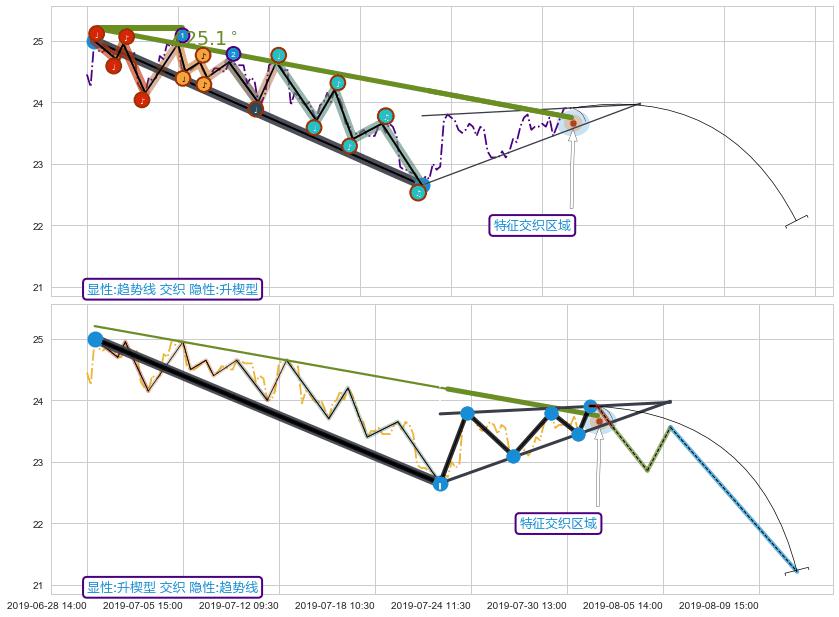 ➢ 趋势线与升楔型信号事件周期长度级别相同,同周期信号事件