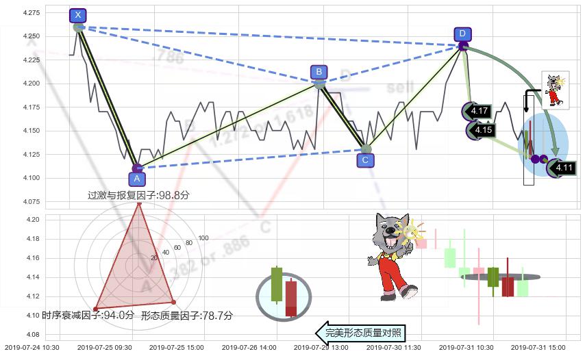 ♘ 阻力价格位4.13,可信任强度72.74%,距离最后交易2019-07-31 15:00形成的收盘价格4.12相差 +0.32%