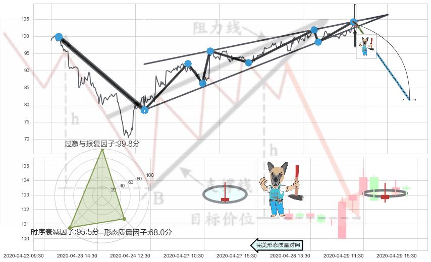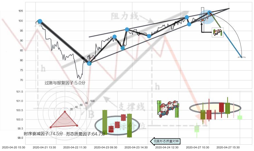 ➢ 🕰 价格走势在2020-04-27 09:30:00至2020-04-27 13:30:00期间形成下降三部曲(降势三鹤),残存影响值:-3.20