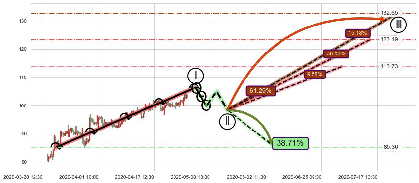 ➢ 如卖出理由为abc向下回调,但高概率大级别循环浪继续上涨,继续上涨概率61.29%