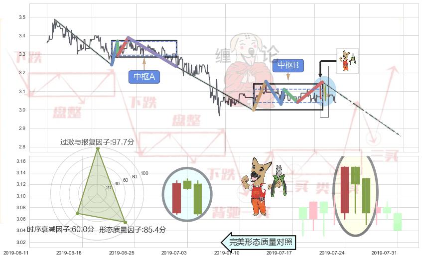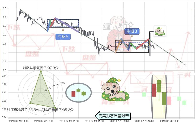➣ 下跌螺旋桨 + 缠论中枢点破位中枢B支撑下拉信号叠加后【信号初始稳固度】高,【看空】信号叠加【可信度影响大】