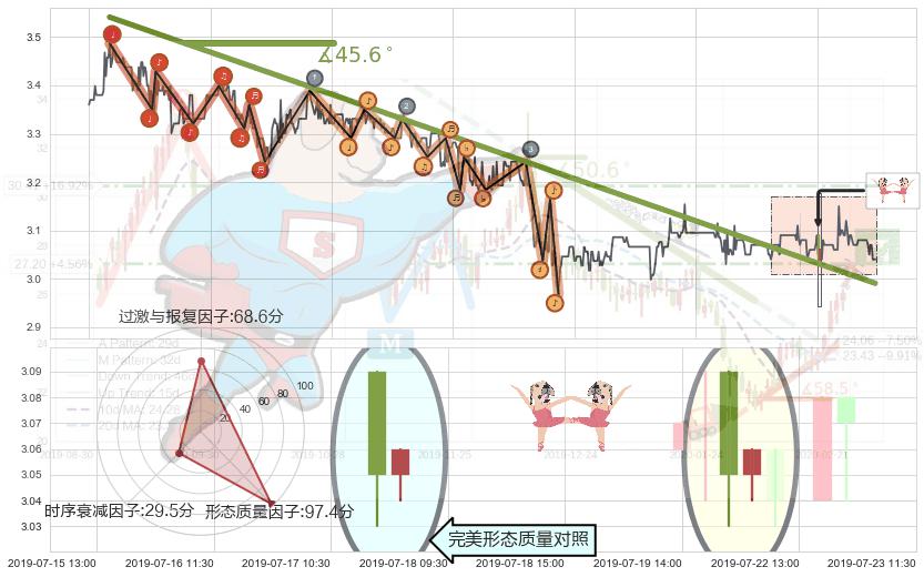 ➢ 🕰 价格走势在2019-07-24 00:00:00至2019-07-26 00:00:00期间形成下跌镊子线(n形磁铁),残存影响值:-3.53