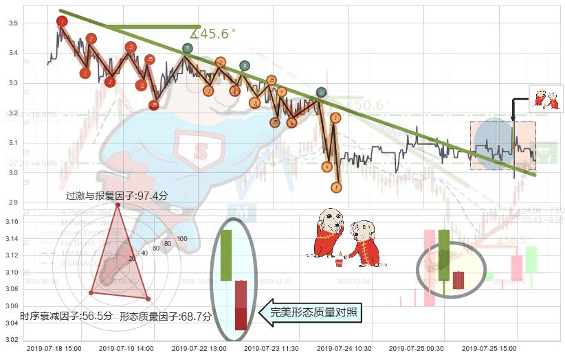 ➣ 2019-02-25 14:00-2019-06-24 13:00下跌趋势存在反转上涨[机会],其原下跌趋势的阻力位(2.991)已被突破[强支撑信号],原下跌趋势角度: 45.6˚