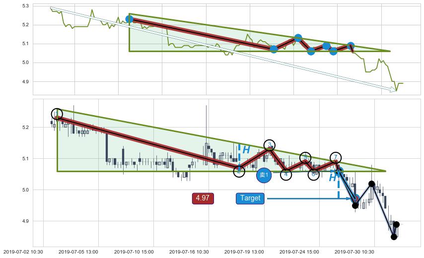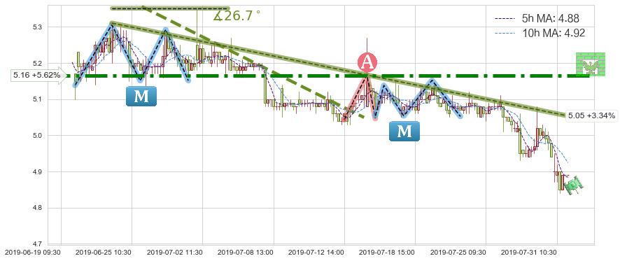 ➣ 预测:2019-08-23 11:00,【继续下探】稳定目前下跌趋势的前提下,预测价格:4.78