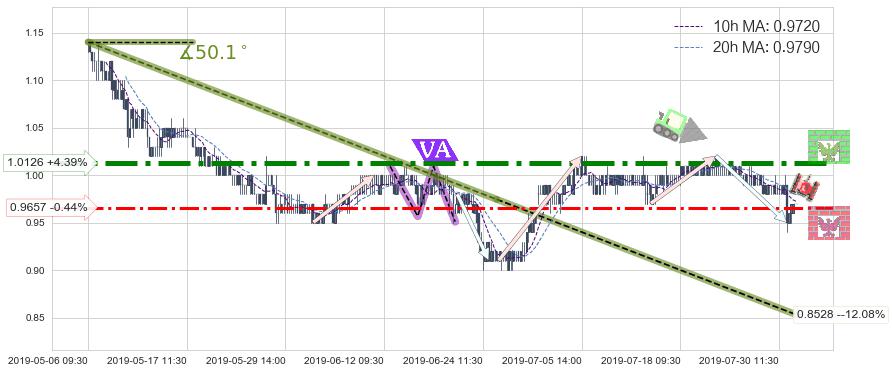 ♘ 阻力价格位1.0126,可信任强度86.72%,距离最后交易2019-07-31 15:00形成的收盘价格0.9700相差 +4.39%