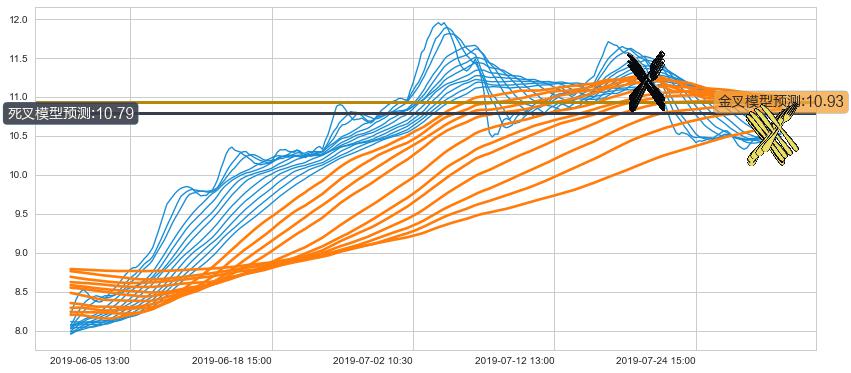 ➢ 90小时均线于(07-19 15:00: 11.25)形成【死叉】基于【死叉历史模型】预测死叉后最低波谷价格: 10.82, 死叉后最低价格10.28,已经下跌超出预测最低波谷价格, 预期反弹