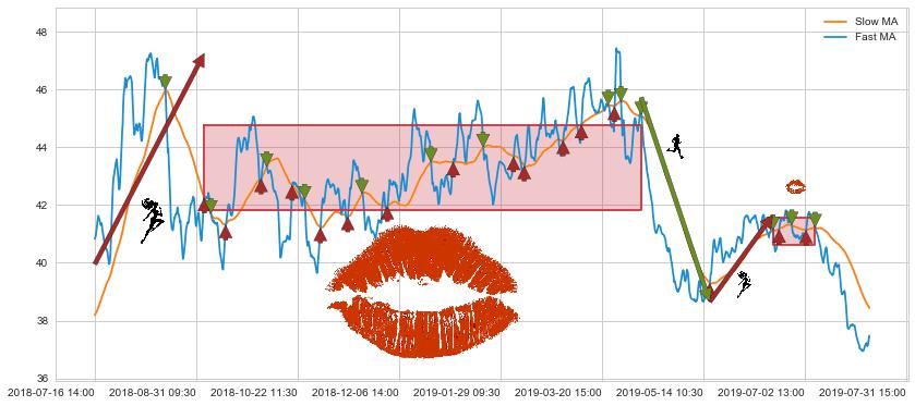 06-17 10:30至07-08 09:30 慢线与快线多次接触,存在上下穿越,有缠绕