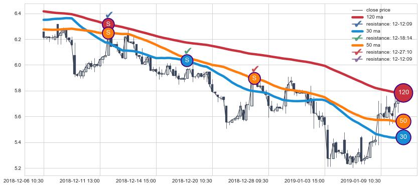 📝 多条均线形成死叉后走势最低价格达到: 5.56