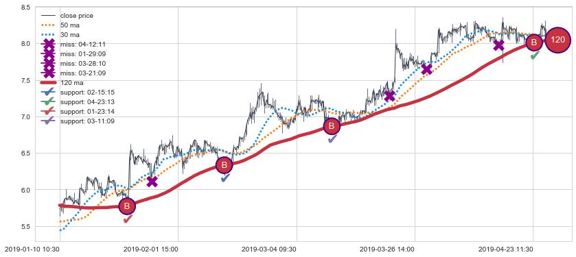 👍 尚未达到多条均线预测的最高波峰价格的平均值, 预期继续上涨