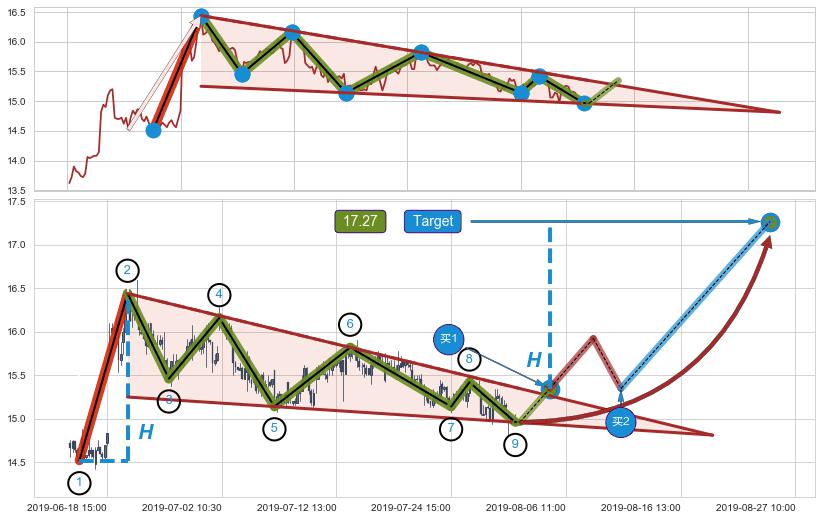 ➢ AI预测: 假定反转启动后, 第❷目标位置(08-15:11, 15.81)